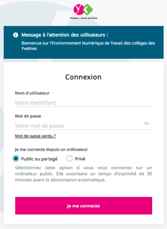 - aller sur l’adresse officielle de l’ENT enc.hauts-de-seine.fr ou enc.haut-de-seine.fr/my.policy ;